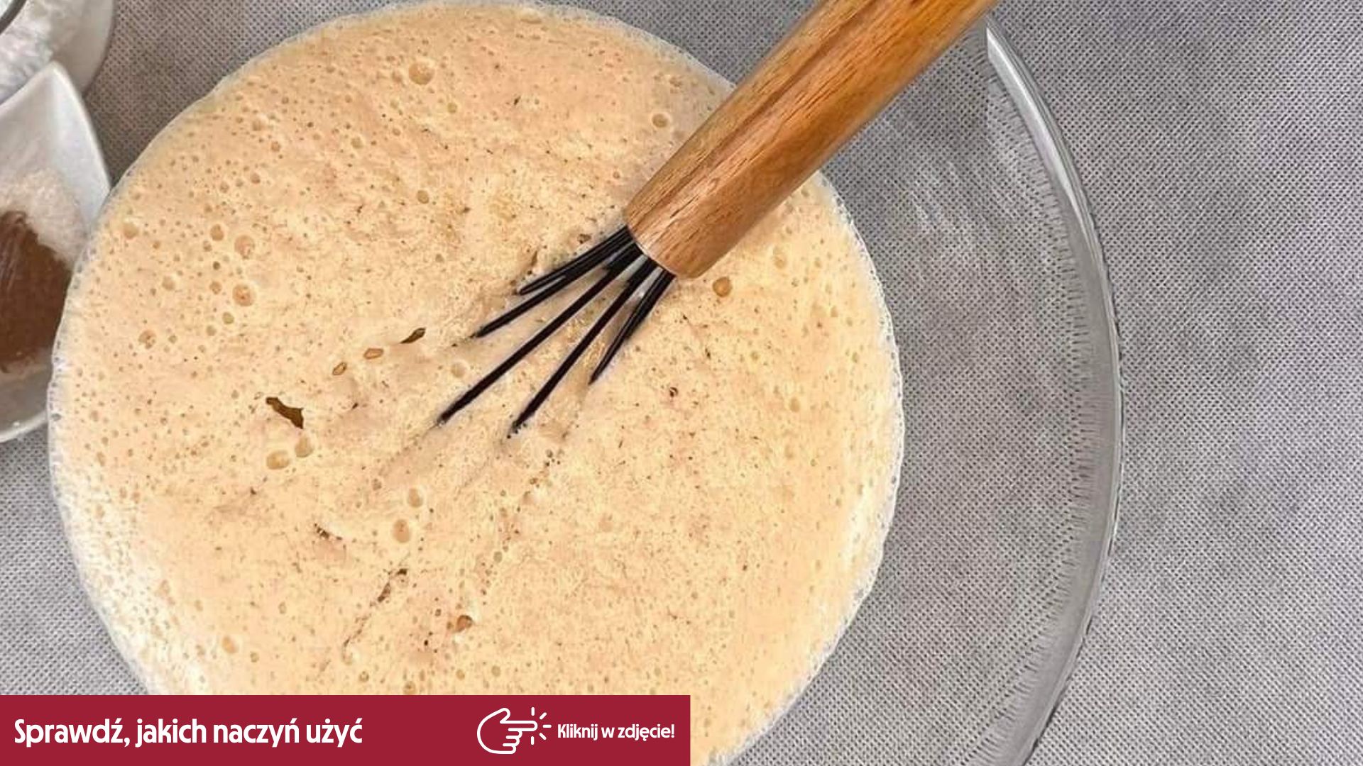 Do zaczynu dodaj jajka, 1 łyżkę cukru, cukier waniliowy, cynamon i wymieszaj trzepaczką (np. z kolekcji NATUR). Następnie naprzemiennie dodawaj przesianą mąkę ze szczyptą soli i mleko, cały czas mieszając do uzyskania jednolitej konsystencji. Ponownie przykryj naczynie ręcznikiem kuchennym i odstaw w ciepłym miejscu na minimum 30 minut.