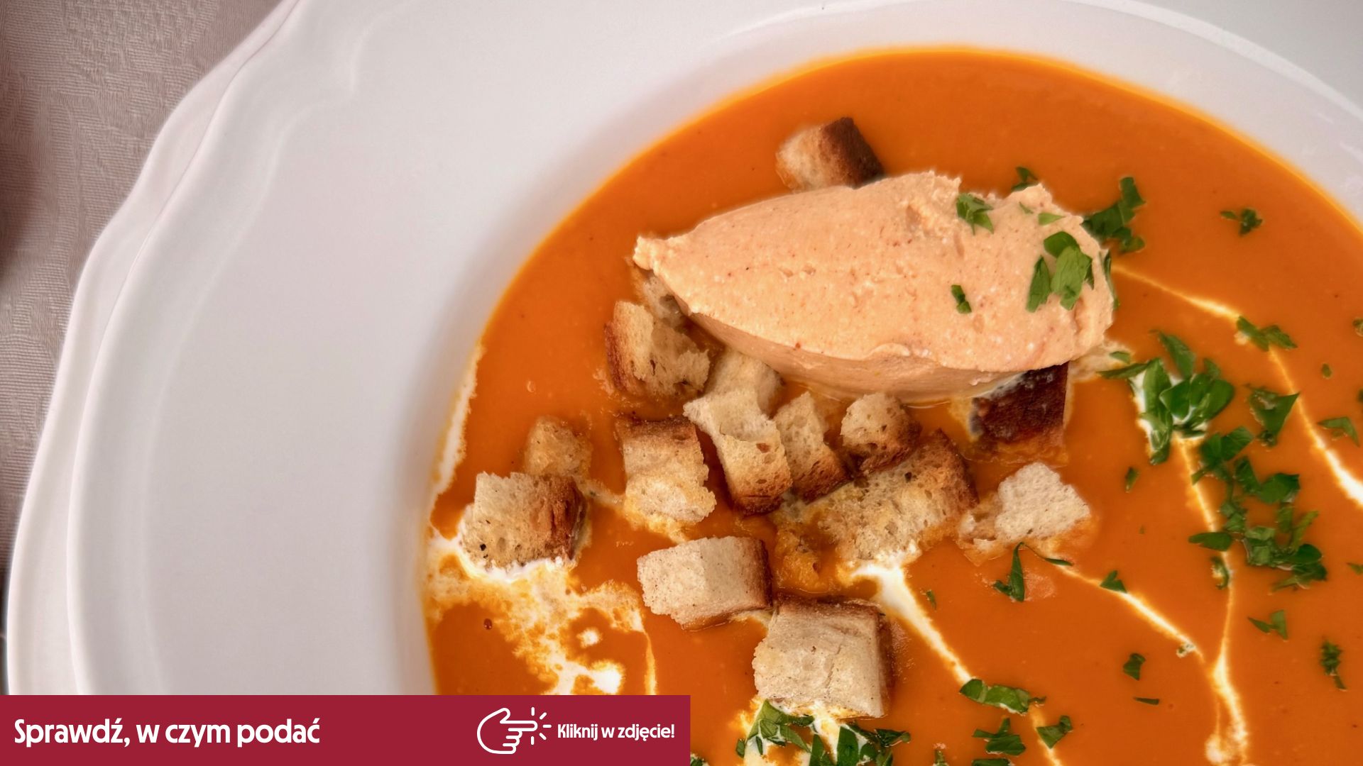 Krem z dyni wlej do talerzy. Dodaj kleks bryndzy z harrisą, grzanki, kroplę śmietany i – opcjonalnie – posyp posiekaną natką pietruszki lub kolendrą. Smacznego!