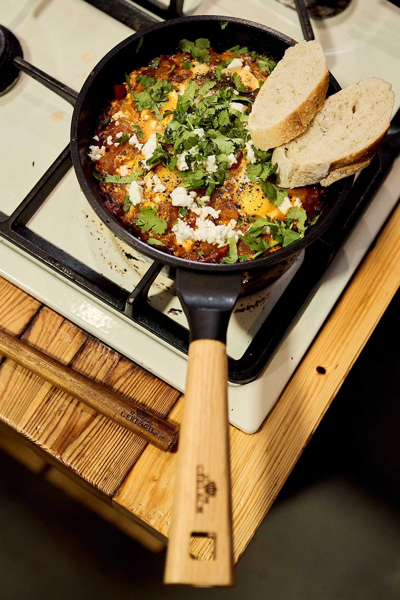 Pyszna szakszuka z serem manouri to doskonałe danie śniadaniowe dla miłośników jaj oraz pomidorów. Sprawdź przepis stworzony we współpracy z Pracownią Smaku przez Marlenę Starzec. Do jej przygotowania przyda Ci się wygodna patelnia o średnicy 20 lub 24 cm.