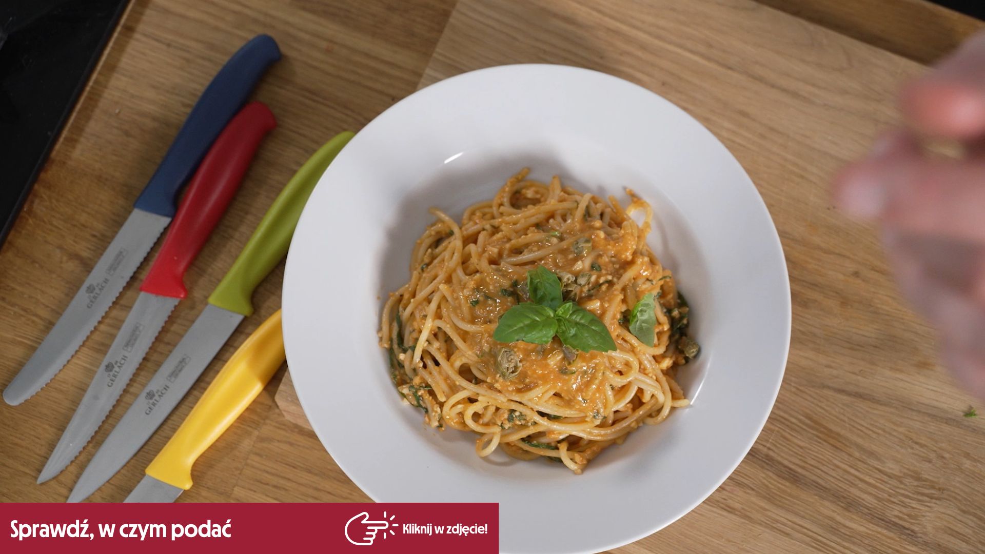 Do przygotowania tego dania polecamy akcesoria NATUR ze szpatułką do mieszania i specjalną łyżką do spaghetti.