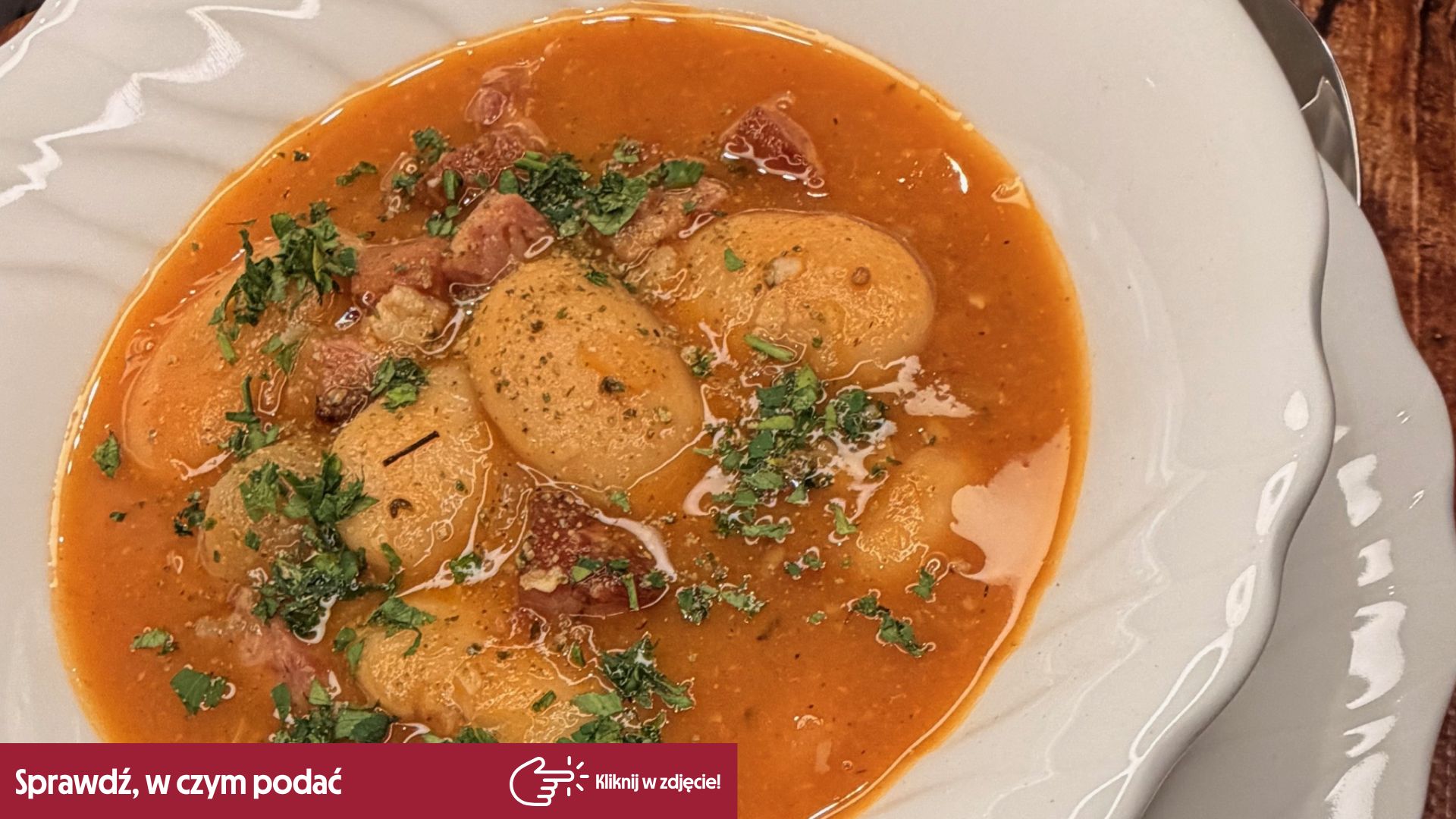 Na sam koniec spróbuj, czy smak dania Ci odpowiada. Powinien być intensywny, wędzony, pomidorowy, z wyraźnym aromatem cząbru. Jeśli jest zbyt mało kwaskowy dodaj łyżkę octu winnego.