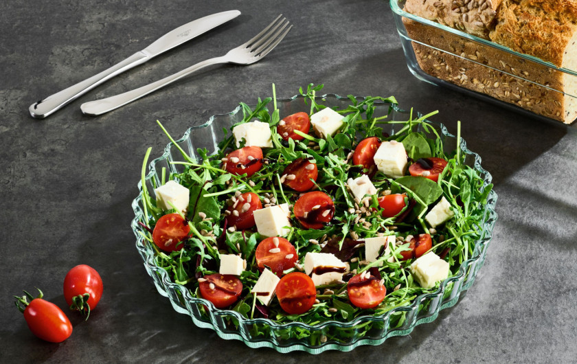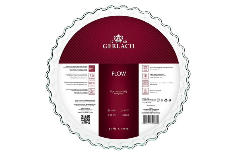 Naczynia żaroodporne FLOW są odporne na zmiany temperatur do 180°C. Mogą być użytkowane w piekarniku do temperatury 300°C. Mogą być również wkładane do lodówki i zamrażarki do temperatury -40°C.